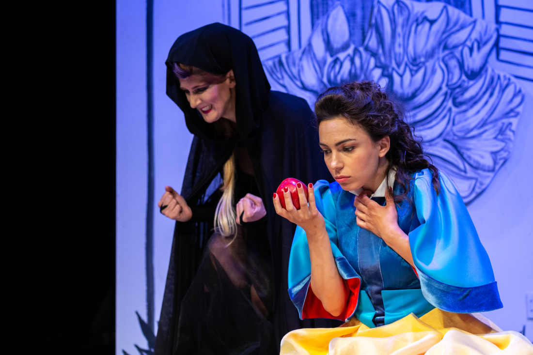 Из односа Снежане, Краљице и Огледала произилази основни сукоб у представи. Женско питање лепоте наметнуте стандардима друштва провејава кроз бајку и представља основни мотив ове комедије за децу.
