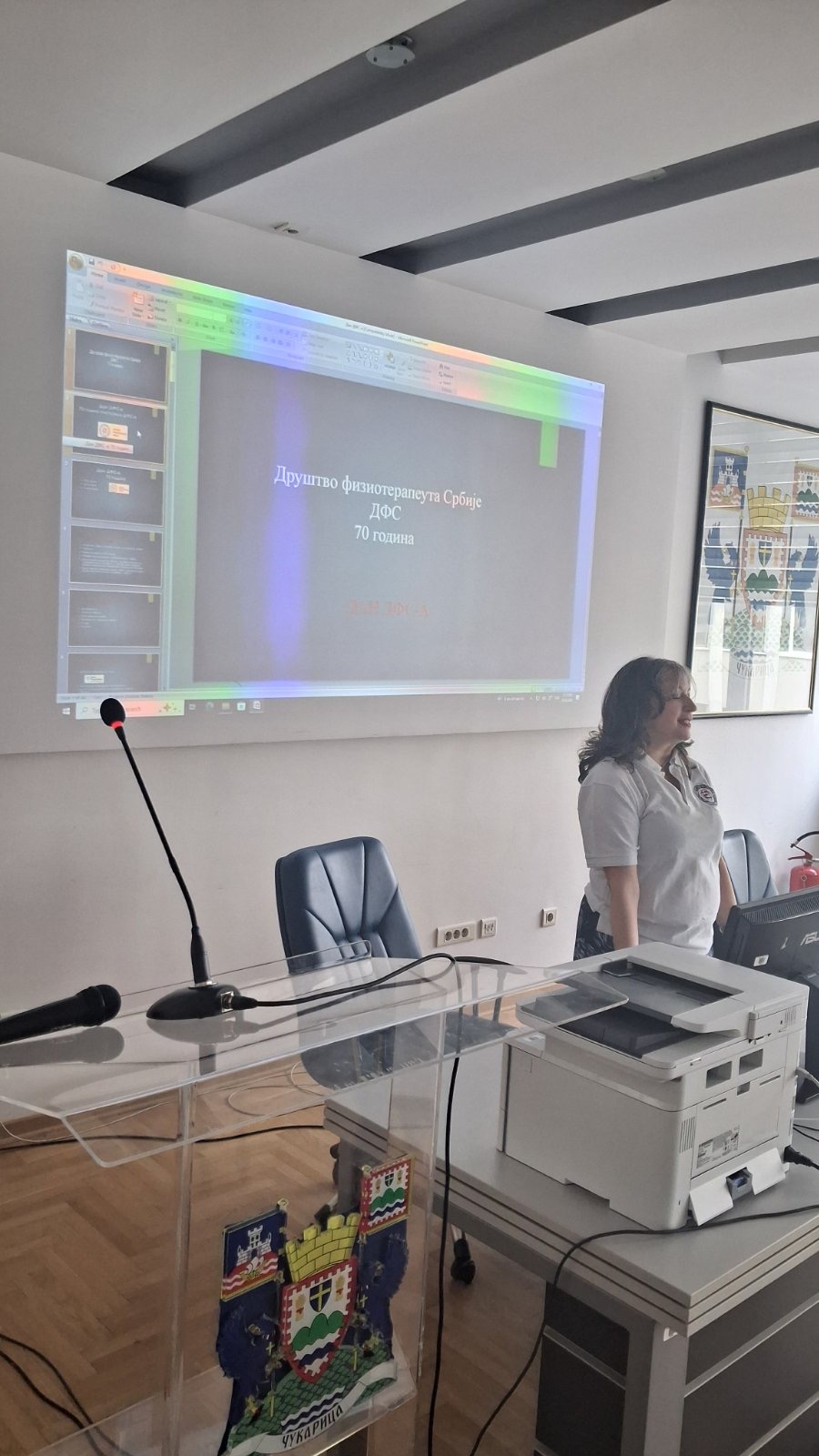Кроз изузетну презентацију, председница удружења Невена Обрадовић је представила историју ДФС-а у неколико периода, истакла значајне појединце, представила стални развој праксе, усавршавања и улоге ДФС у друштву, чији су чланови значајан део друштва који воде рачуна о здрављу појединца, породице и друштва у целини.