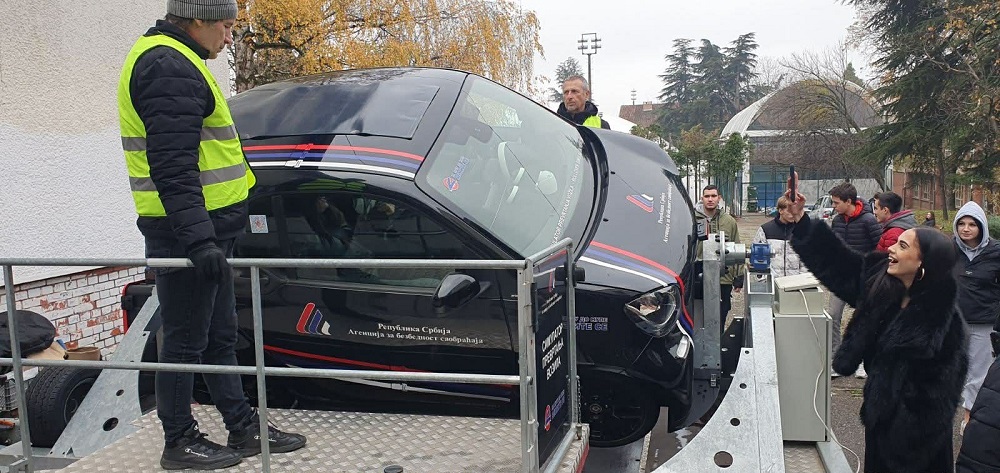 Ученици XIII београдске гимназије и Хемијско-прехрамбено технолошке школе имали су прилику да осете колико је употреба сигурносног појаса пресудна за спасавање живота. Његовом правилном употребом спречава се контакт путника са унутрашњошћу возила, избацивање из аутомобила и распоређује се енергија удара на цело тело.