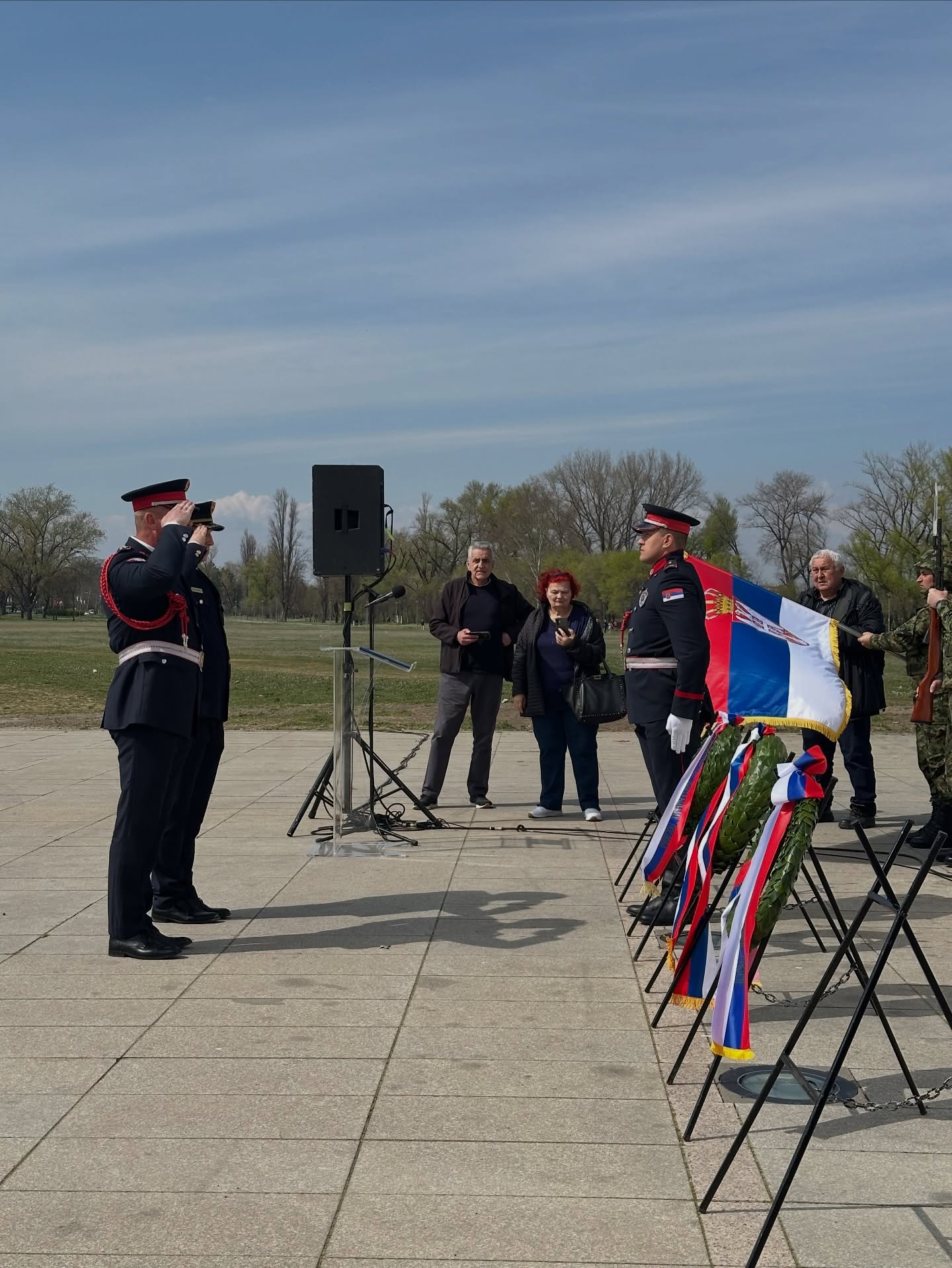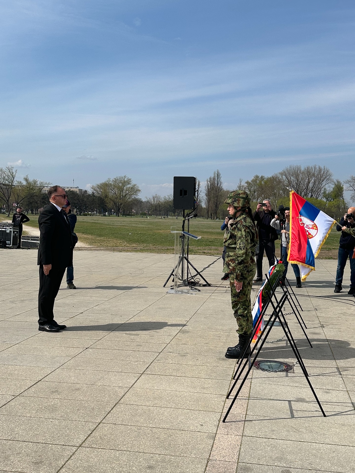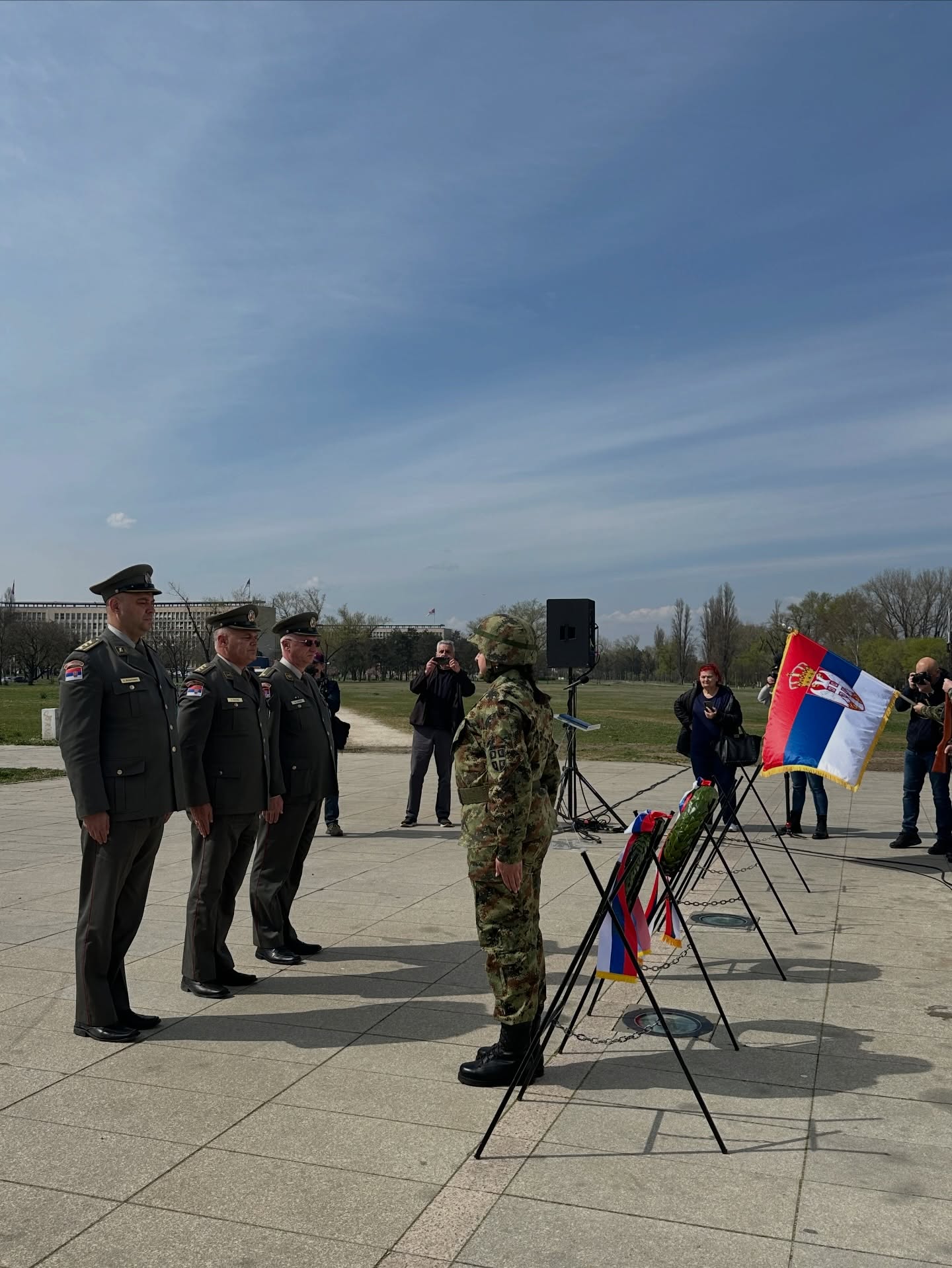 Венце су положили и почаст одали представници Владе Републике Србије, Министарства одбране и Војске Србије, Министарства унутрашњих послова, Града Београда, градских општина Чукарица, Нови Београд, Земун и Сурчин, чланови породица страдалих у НАТО агресији, као и представници удружења бораца и грађана.