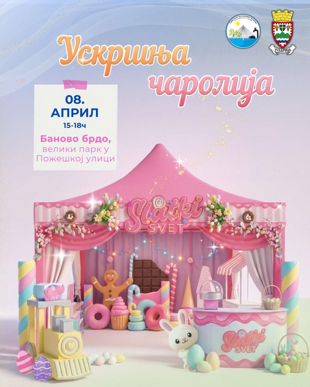 Седмог априла програм ће се одржати у насељу Церак виногради у Церовој улици, а осмог априла у Великом парку, у Пожешкој улици, оба дана од 15 до 18 часова. Манифестација је замишљена да деци улепша дане уочи највећег и најрадоснијег хришћанског празника, као и да им приближи верске и народне обичаје који га прате.