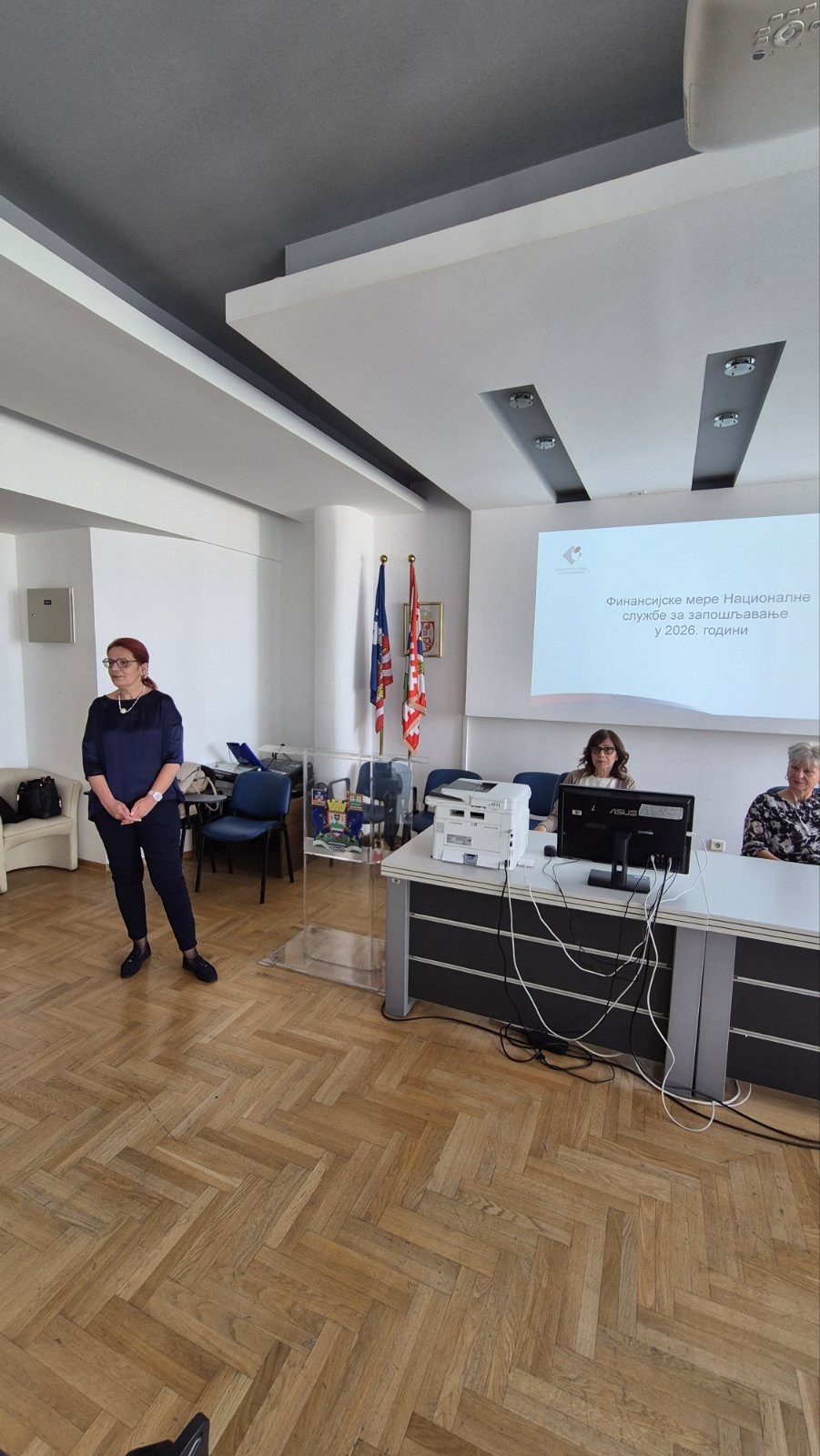 О обукама су говориле начелница Oдељења за програме запошљавања и предузетништва Весна Живковић Костић, начелница Oдељења за додатно образовање и обуку Марчела Вуинац Обућина и саветник за запошљавање особа са инвалидитетом Сања Каначки.
